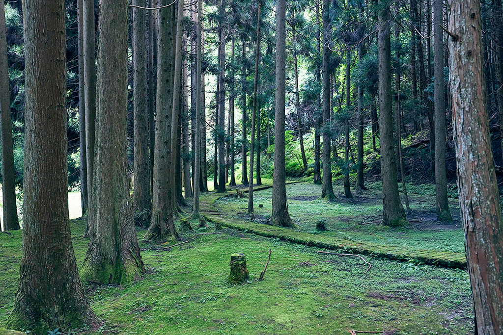 「3つの島」の周囲は池に沿って遊歩道が設けられています。遊歩道は木材のチップなど柔らかい素材で舗装されているうえ、コケも絨毯状に広がっているので、小さい子どもでも安全に園内を散策できます。