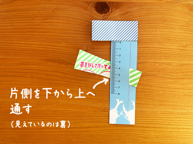 6. ❸の片方のはじを、「5」で切った真ん中に通す