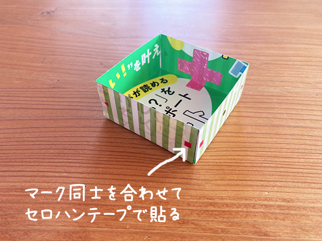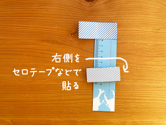 7. ❸のはじとはじを合わせて、右側をセロハンテープで貼る