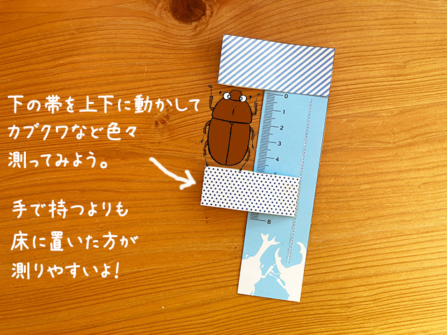 8cmまで測ることができます。ぜひカブトムシやクワガタの大きさを調べるときに使ってみてください!