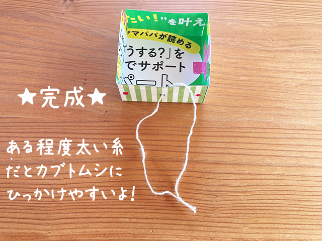 カブトムシのパワフルボックスは、本書88ページ「カブトムシは力もち?」で使います。カブトムシの胸角(小さい方のツノ)に糸を引っ掛けて、10円玉を1枚ずつ入れ、何枚運べるか調べてみて!