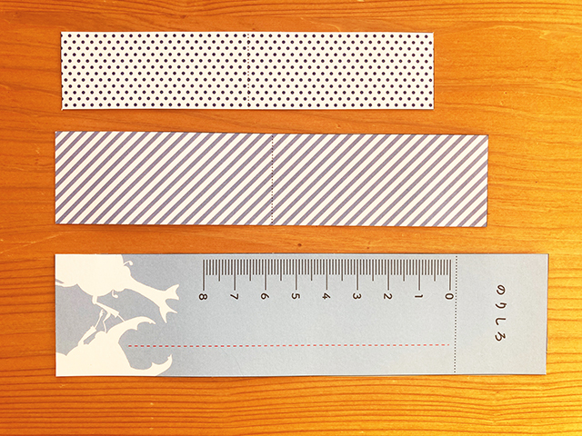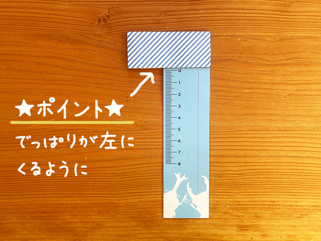 3. ❶の「のりしろ」に合わせて、表裏の両面をのりで貼る