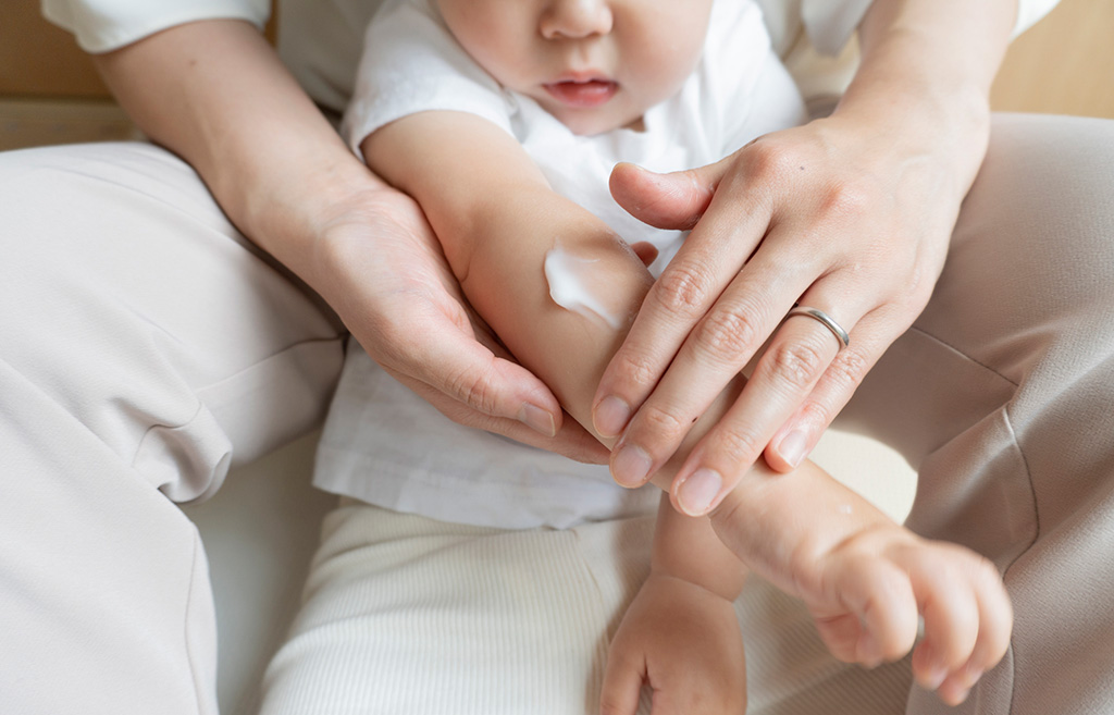 肌が弱いお子さんやアトピー性皮膚炎のあるお子さんに日焼け止めクリームを塗ると、それによるかぶれを起こしてしまうことがあります。医師の指示にしたがって抗炎症薬などで肌トラブルを治すことを優先し、紫外線対策は衣類や帽子で工夫しましょう。なお、肌トラブルがなくても、すり傷がある場合は、傷の部分を避けて日焼け止めを塗りましょう。