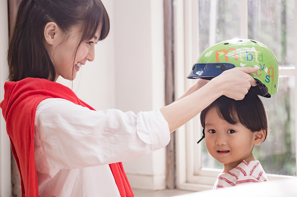 ヘルメットを購入するとき、つい親が選んでしまいがちですが、子どもと一緒に見て、子ども自身に選ばせるのもポイント。自分で選んだヘルメットには愛着が湧き、すすんでかぶってくれるようになるでしょう。