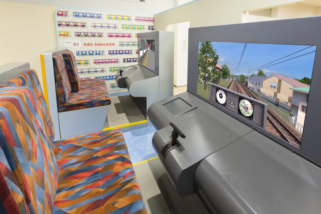 この博物館の一番人気が、1階の「シミュレーターワールド」にある「8090系運転シミュレーター」(別料金)です。実際の運転席と同じ造りで、沿線の風景や車内の音まで再現された本格的なもの。路線が選択でき、ノーマルモード、ガイダンスモードのはか、朝のラッシュを想定したエキスパートモードまであります。小学校中学年以上を対象にした体験装置です。当日予約制になっていますので、まずはインフォーメーションで予約をしておきましょう。