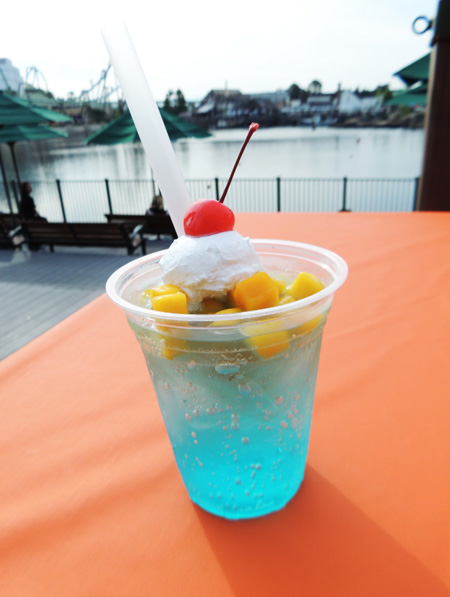 ニューヨーク・エリアのユニバーサル・マーケット内「ハピネス・ワゴン」で買える、ブルーハワイ・ソーダ ~マンゴー&ホイップ~ 600円
