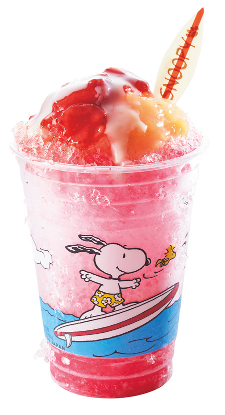 ユニバーサル・ワンダーランド「スヌーピー・バックロット・カフェ」で買える、スヌーピー・フラッペ ~いちごミルク&白桃~ 850円