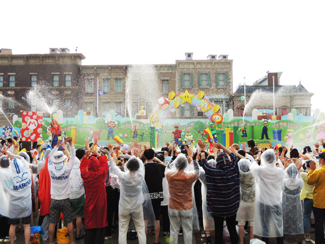 「スーパー・ニンテンドー・ワールド」からマリオたちが初参戦。夏恒例のびしょ濡れイベントが復活した。ウォーターシューターを手に水かけまつりに参加しましょう。ステージのすぐ近くにはリトル・キッズエリアを設置。未就学児のキッズと同伴者限定で入ることができます(定員になり次第終了)。