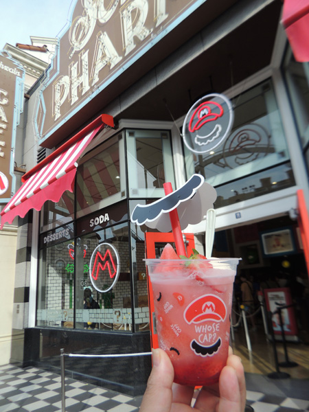 夏にピッタリのさわやかな、マリオのいちご ソーダスムージー 850円。ハリウッド・エリアの「マリオ・カフェ&ストア」で販売