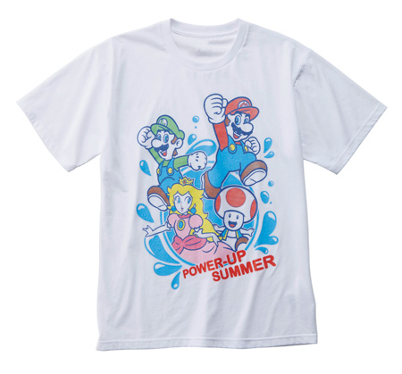 水に濡れると色が変わり画像のようになるTシャツ 大人4700円・キッズ3700円はスーパー・ニンテンドー・ワールドの「ワンナップ・ファクトリー」などで販売