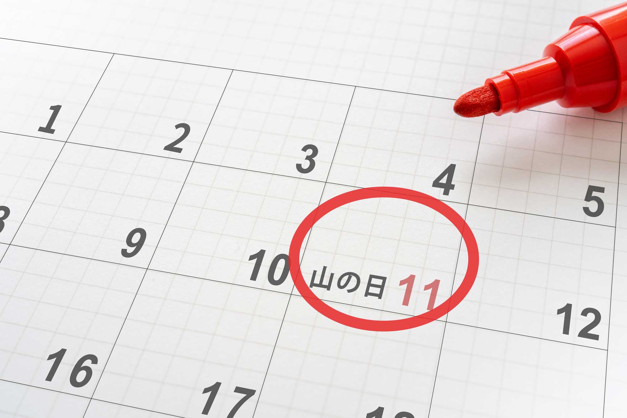 山の日は、8月11日(月)。2025年は月曜日のため、三連休になります。