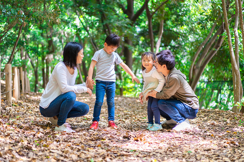 ネイチャーゲームは自然を見て、触って、感じながら、さまざまな自然の姿を発見できます。「なにこれ!」「こんなものあったよ!」と喜ぶ子どもの笑顔が見られると、親もうれしくなるものです。