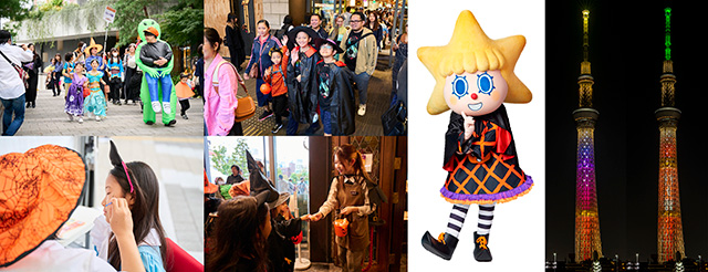 大好評の「ハロウィンファミリーパレード」は10月25日(土)、26日(日)に開催!みんなで仮装して練り歩き、ゴールでソラカラちゃんと記念写真を撮影しよう!小学生以下の子ども限定でお菓子などの嬉しいプレゼントがもらえる「TRICK or TREAT フェア」や東京ソラマチ(R)と東京ミズマチ(R)を巡るスタンプラリーも開催!