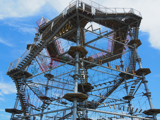 - 大型アスレチック/高さ15m/ウェーブ、クモの巣、クライミングパネル、スピンなど36種類のアトラクション/身長120cm以上かつ体重30kg~110kg