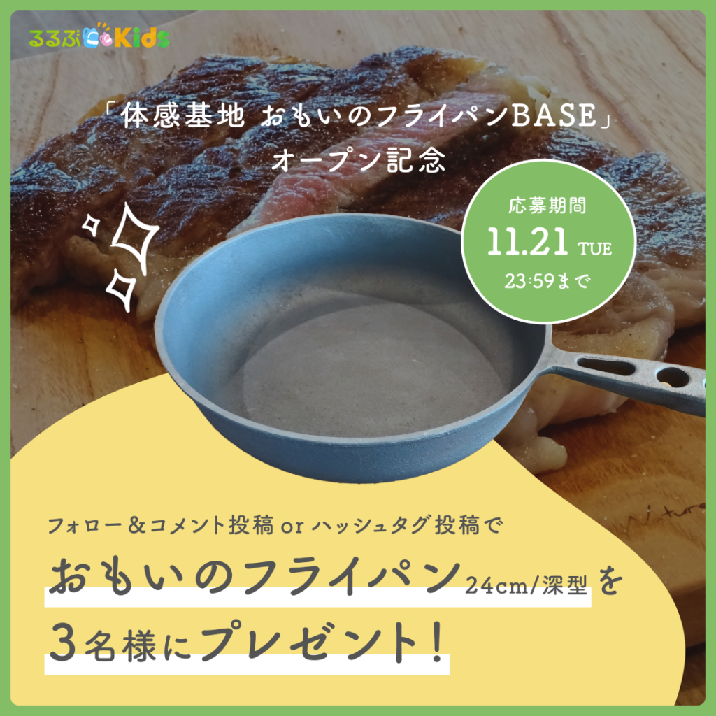 参加方法は、「るるぶKids」のInstagram公式アカウントをフォローして、告知投稿のコメント欄に、おもいのフライパンを使って「子どもにつくりたい料理」を投稿するだけ。