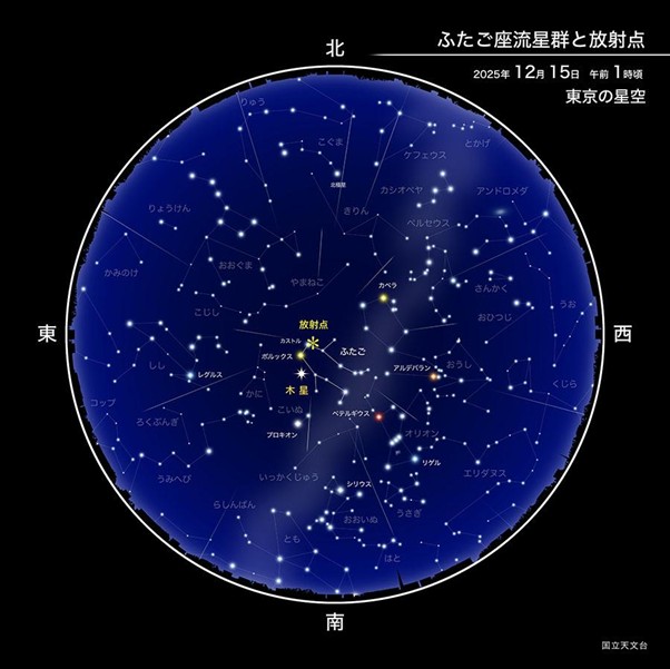 出典:» 国立天文台|ふたご座流星群が極大(2025年12月)