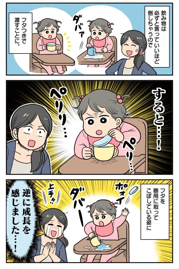 - こぼすこと自体が、子どもにとっては楽しかったりするんですよね。そのあと手でびしゃびしゃさせたり…