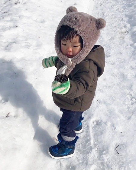 子どもは遊びに夢中になると時間を忘れてしまうもの。とくに雪があると、普段と違う風景に興奮して気がつくと体が冷え切っていた…なんてことになりかねません。上手に重ね着をして、防寒対策を。アウターは防水性のあるものを選び、服に雪がしみないようにしましょう。帽子や手袋も必須アイテムです。