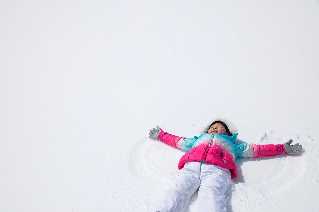 雪にどう倒れるかを工夫することで、大人か子どもかわからなくなって難易度がアップ。雪が浅いところで行うときは倒れるのではなく、足だけ、手だけで型をつけて楽しむこともできます。