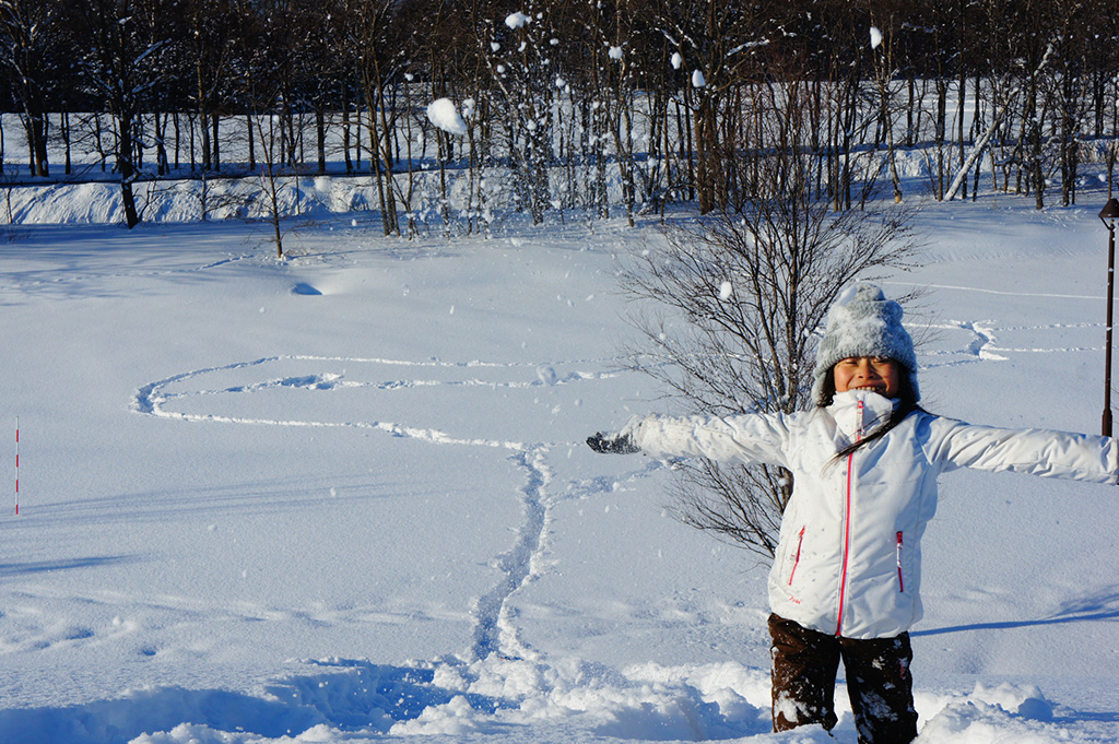 雪の上に倒れて型をつけ、それがだれのものかをあてるゲーム。雪との一体感を味わうことができます。