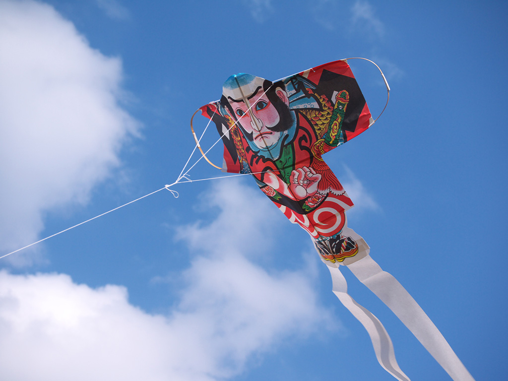 凧は風の力を利用して、空高く揚がっていきます。まず、風の向きを読んで、風の吹いている方向に向かって広げた凧を上げて、糸も同じ方向に向かって引いていきます。風が弱いときは、風に向かって走りながら糸を引くこと。最初は難しいですが、うまくコツをつかめると、気持ちよく凧が揚がっていきます。ぜひ楽しくチャレンジしてくださいね。