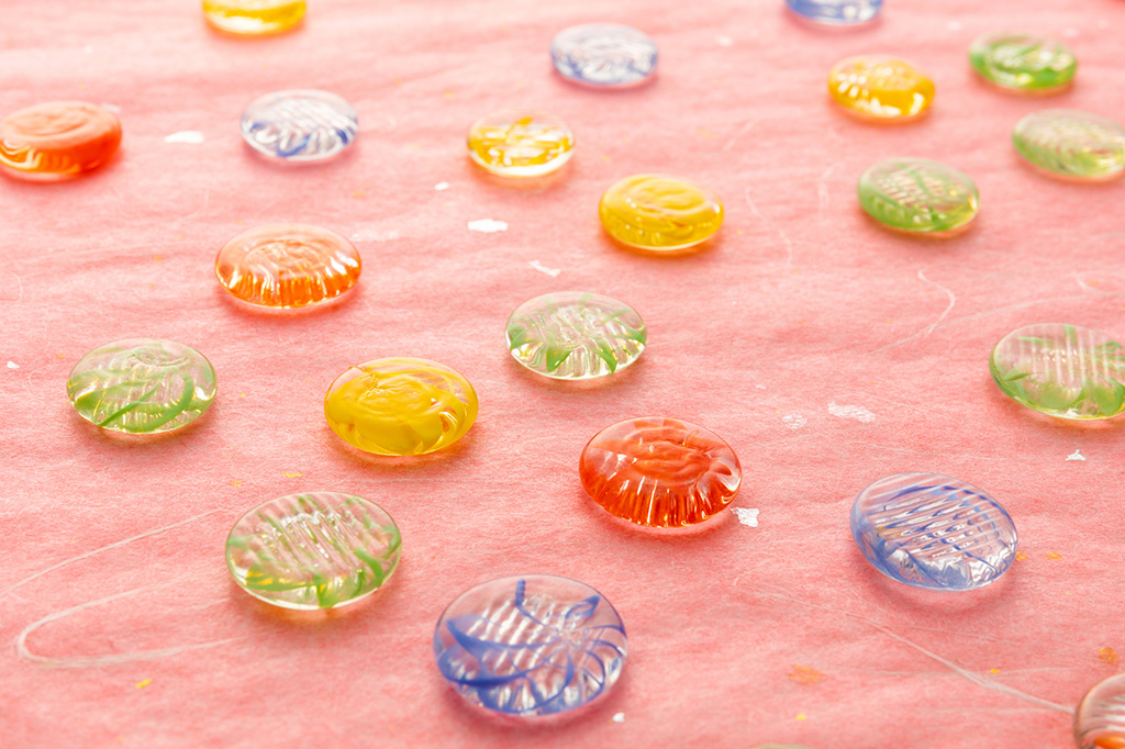 おはじきは奈良時代、中国から伝わったとされ、この頃は小石や貝がらを使って、宮中で貴族たちの間で遊ばれていたそうです。女の子の遊びとして流行したのは江戸時代で、ガラス製のおはじきになったのは、明治時代後期です。きれいな色がたくさんあることも、子どもたちに人気の理由です。