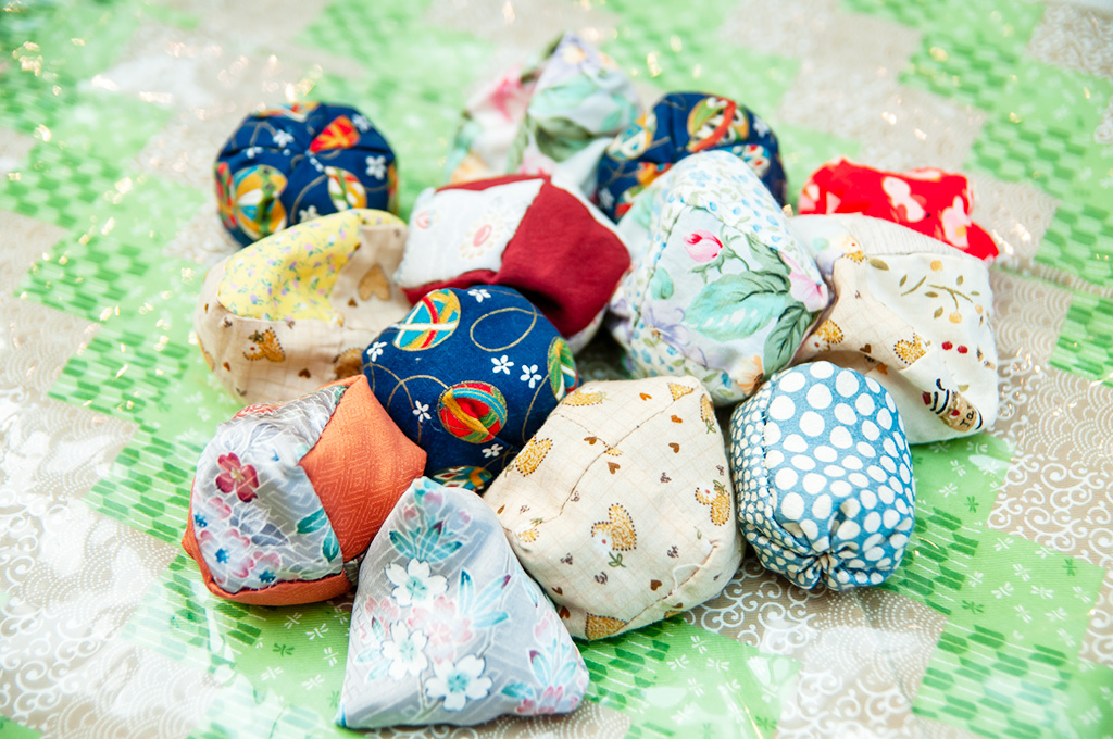 お手玉は、祖父母から孫へと代々受け継がれ、遊びを通じて、作法や礼儀などを学ぶ「隔世伝承遊び(かくせいでんしょうあそび)」のひとつに選ばれています。お手玉を作ることで裁縫を身につけたり、遊ぶときに正座を覚えることもできます。ただ楽しいだけでなく、子どもの成長にも関わる要素が、お手玉には含まれているんですよ。