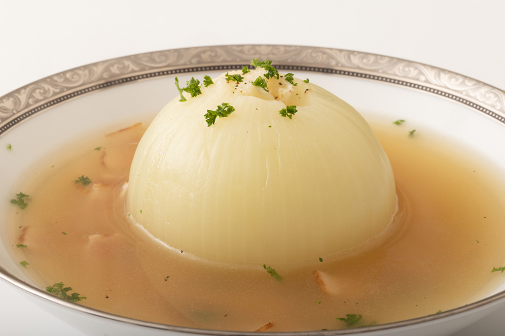 タマネギの甘みがたっぷり「丸ごとオニオンスープ」