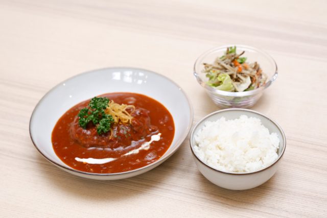 がっつり食べたい人には、肉汁あふれるハンバーグにデミグラスソースが食欲をそそる「煮込みハンバーグ(880円)」を。「ジャークチキンカレー」や「油淋鶏」など本格的なご飯ものも揃っています。小さな子どもには「お子様カレー」もありますよ。