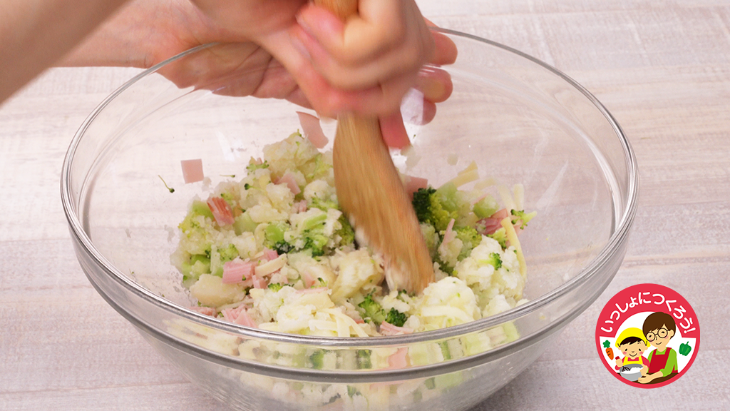 ピザ用チーズやマヨネーズ、ハムといった子どもが大好きな食材がたっぷり♪細かく切ったブロッコリーだと苦手な食感も気にならず、楽しく食べられます。