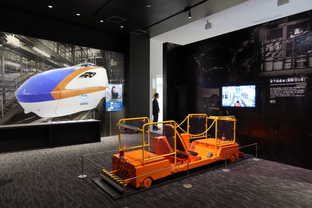 新幹線の床下作業に使われる「床下検修車」。実際に座ることも