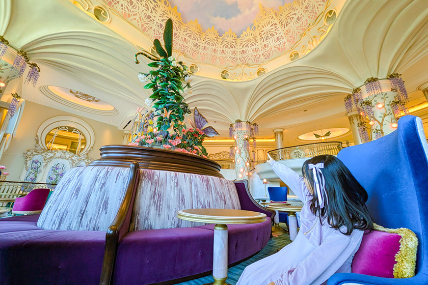 パークを見渡せるパブリックエリアにあるテラス、館内のデコレーションなど、親子でディズニーの世界に浸れる見どころがいっぱい。