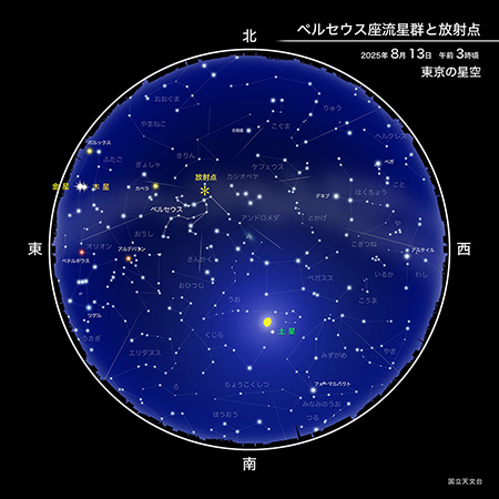 ペルセウス座流星群は7月17日から8月24日まで活動し、8月13日午前5時頃に極大を迎えます。