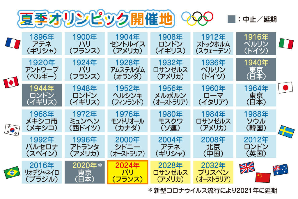 夏季オリンピックは1896年にギリシャ・アテネで開催された第1回から、2024年の今年、フランス・パリで開催される第33回まで、さまざまな国で行われています。