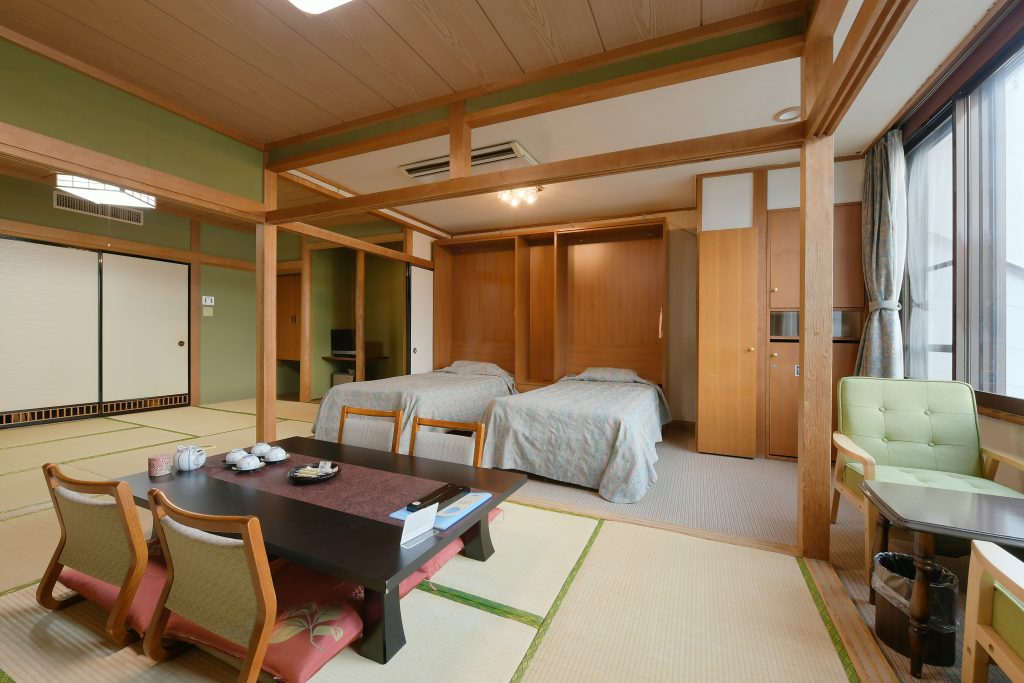 全館畳敷きの和の雰囲気がたっぷりの宿「宝生閣」は、子ども連れや三世代の旅行にもおすすめの宿。最上階の露天風呂付き客室は、特にゆっくり過ごせると評判です。