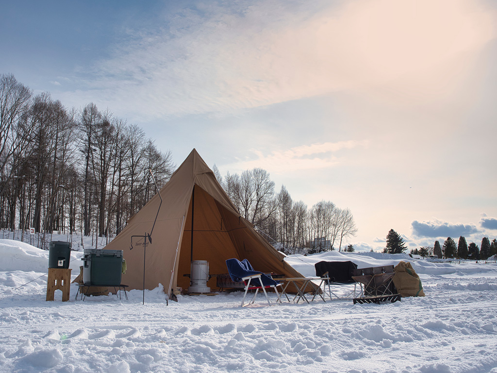 テントは寒風を遮ることができるスカート付きの保温性の高い製品を持参しましょう。就寝時の体温の低下を防いでくれる厚手の寝袋も必須です。