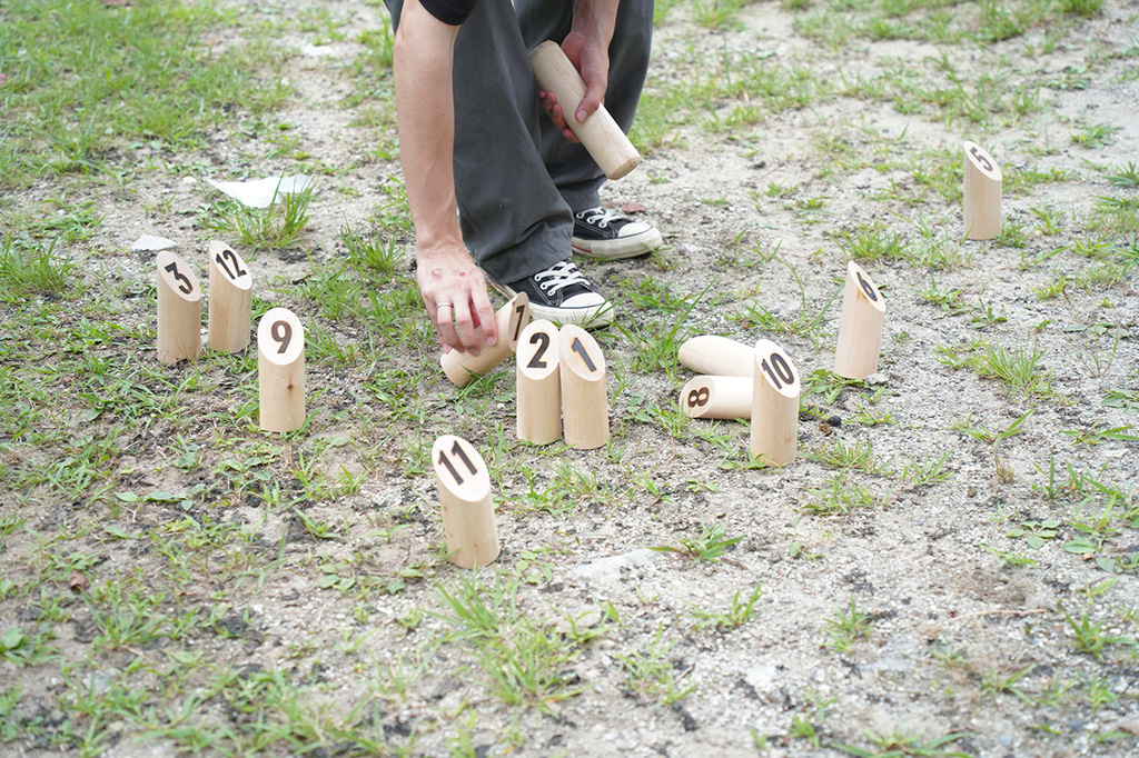 フィンランドの伝統的なゲームをもとに考えられたアウトドアスポーツ。スキットルという数字が書かれた棒を地面に並べて、モルック棒を投げて当てるゲームです。小さい子どもでも楽しめるので、家族みんなで楽しめますよ。