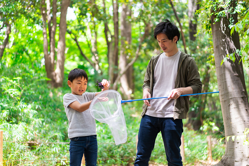 昆虫採集は子どもの知的好奇心を育てるおすすめのアクティビティ。キャンプ場にはカブトムシやクワガタなど子どもが大好きな昆虫がいるところも多いので、親子で探してみるのも楽しいですね。