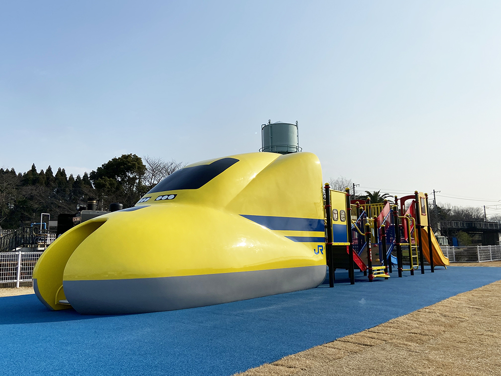 敷地内には、すべり台や吊り橋、ネットなどいろんな遊びが盛り込まれたドクターイエローの遊具もあります。