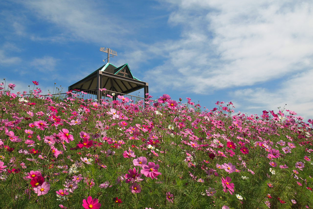 10月ごろには園内のコスモスの丘で、約10万のおコスモスが花を咲かせます。花のスポットとしても有名です。