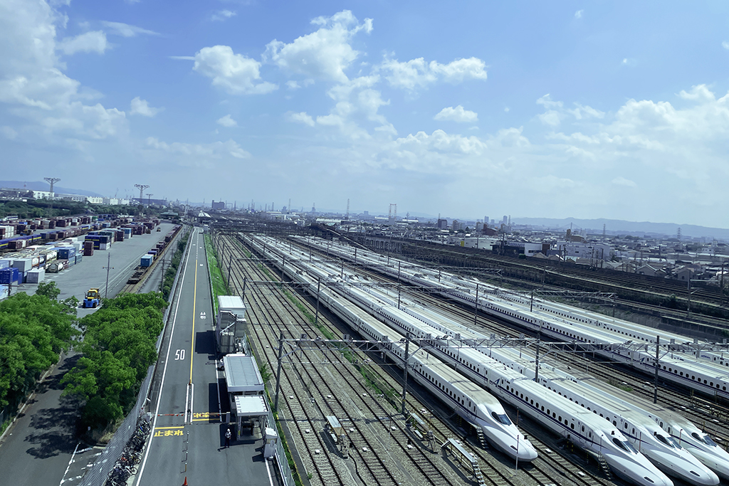 新幹線のメンテナンス基地を一望