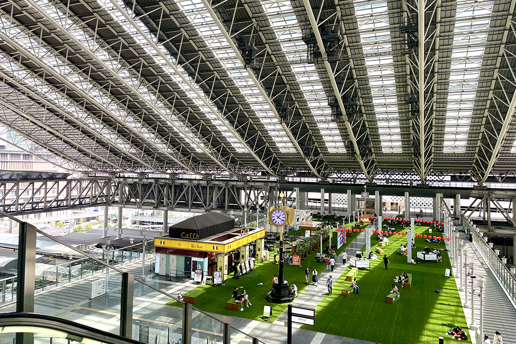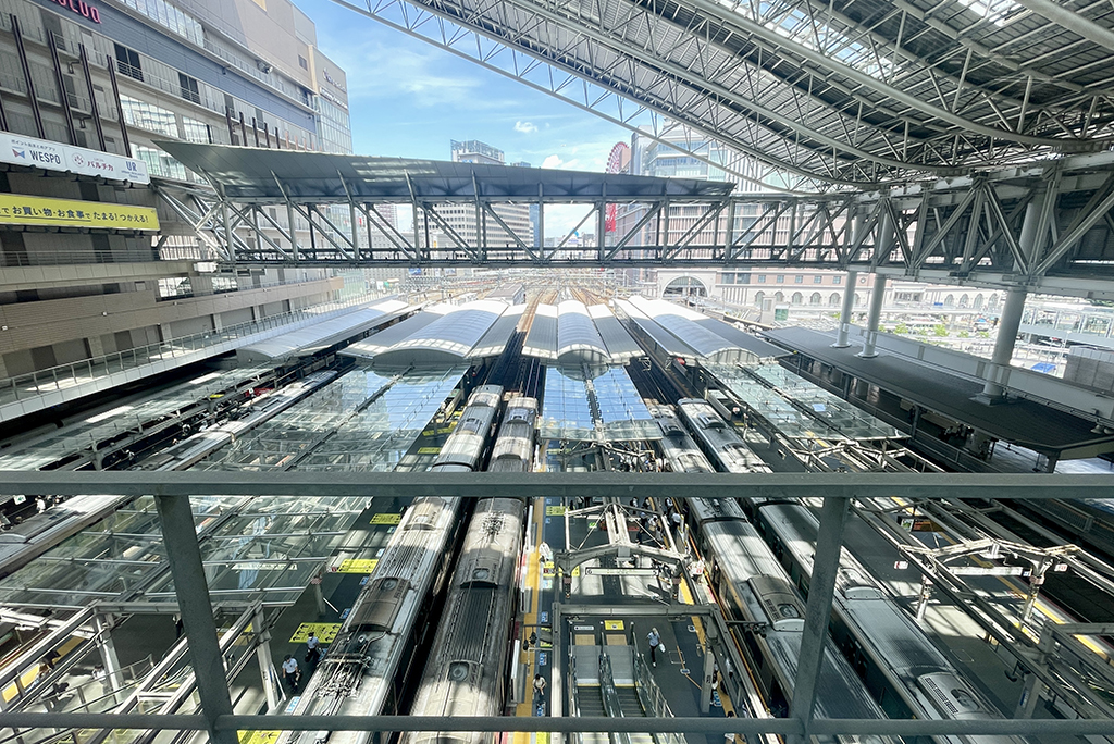 JR大阪駅 大阪ステーションシティの橋上駅屋上5階に広がる空間で、眼下にある6つのプラットホームを行き来する列車の様子を真上から眺めることができます。大阪環状線、東海道・山陽本線、北陸へ向かうサンダーバードをはじめとするさまざまな列車が乗り入れし、巨大ターミナル駅のスケールを実感できるスポットです。