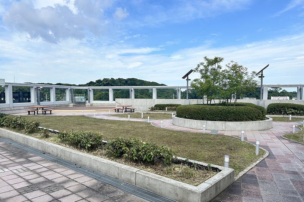 南海高野線・JR阪和線の三国ヶ丘駅の駅ビルの3階屋上に広がる公園で、約640平方メートルの広々とした敷地に、芝生の広場やベンチ、ウッドデッキなどがあります。ウッドデッキにはトレインビュースポットが設けられていて、立体交差している南海高野線とJR阪和線を走行する電車を真上から見ることができます。