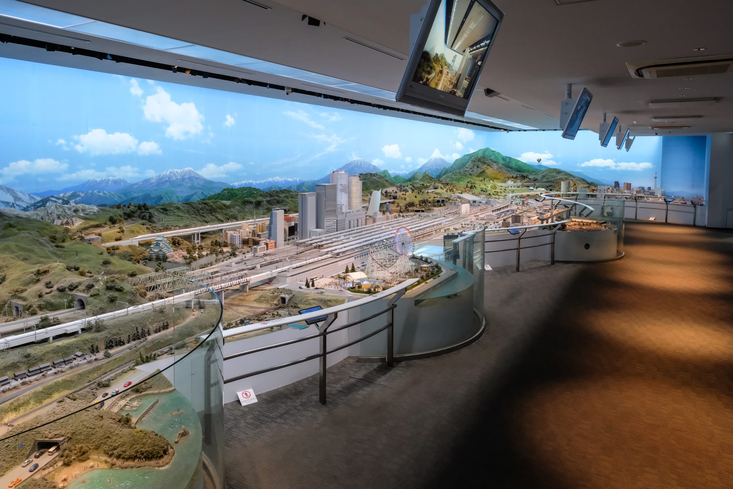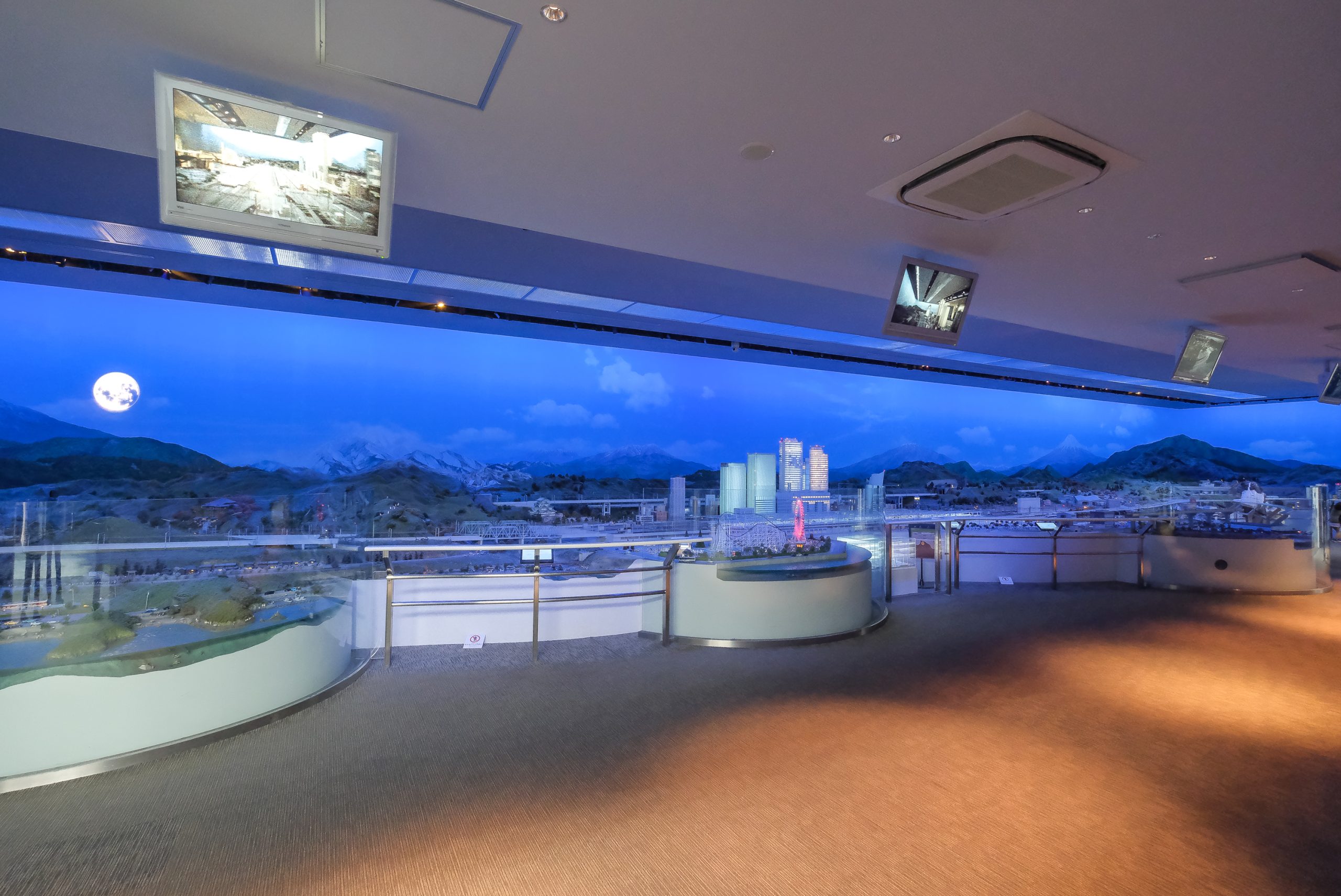 面積約220㎡というビックサイズの鉄道ジオラマもぜひ訪れてみてください。ジオラマ上演は約20分間。朝から翌朝まで1日のようすが再現されます。