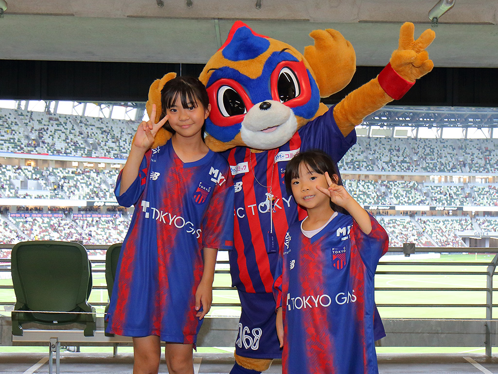 試合開始前にはスタジアムのさまざまな場所にFC東京のチームマスコットである東京ドロンパが出没!一緒に記念撮影をするのも、試合開始前のお楽しみのひとつです。