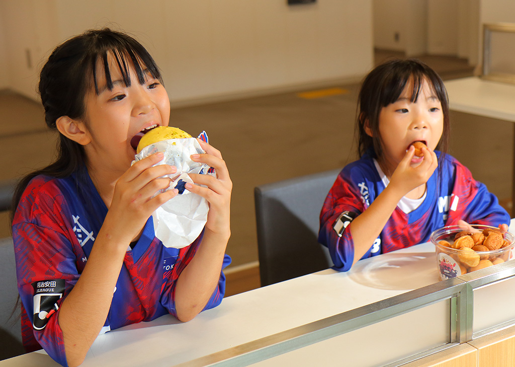 FC東京のオリジナルグルメ「ひんやり東京ドローナッツ」や「東京ドロンパのベビーカステラ」はハーフタイム中のおやつにピッタリですよ♪