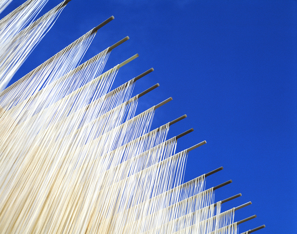天日干しが行われるのは2日目の朝から。最近では室内で干す製麺所がほとんどですが、三輪では今も屋外でそうめんを干す様子を見ることができます。