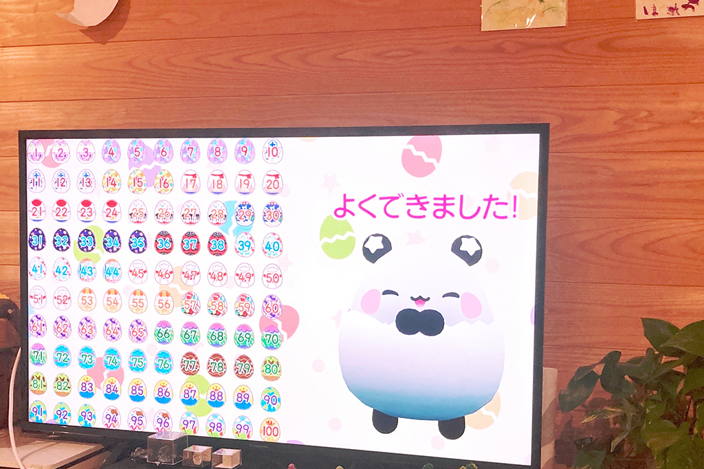 6歳の男の子のお気に入りは「でんしゃのうんてん」。eペンを運転台のレバーに見立てて、アクセルとブレーキの調整をします。本物のシミュレータさながらの操作が必要で、駅にぴったり止まりたいと何回も挑戦!