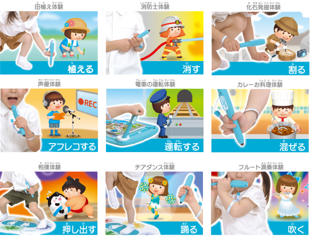 習い事や職業体験を初めとするごっこ体験、図鑑で知る体験、クイズで知識を深める体験など、あらゆる体験がてんこもり!各カテゴリーの体験では専門分野の各企業が監修。学術的観点からは脳科学者・瀧 靖之先生のアドバイスのもと、子どもの創造性や知的好奇心などの非認知能力を醸成できるよう工夫が凝らされています。