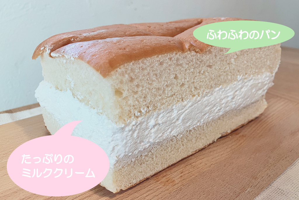 ふわふわのパン生地は、ケーキのような軽やかさで、口の中でとろけるような食感。生クリームをたっぷり使用したクリームとの相性も抜群で、まるでスイーツを食べているような幸福感に包まれます。口に入れた瞬間、ふわっと広がるミルクの香りがたまりません。